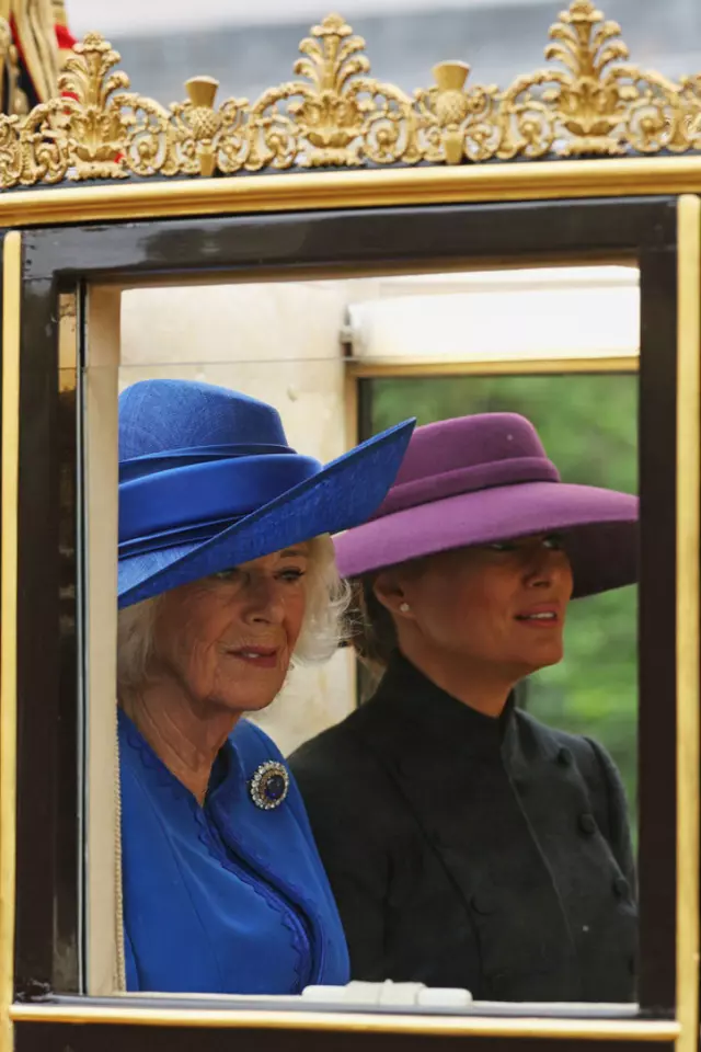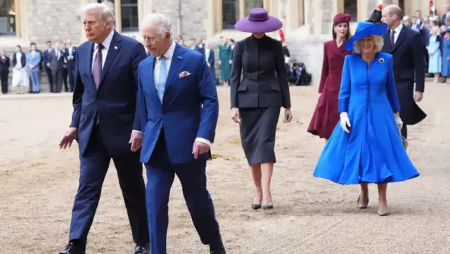 Trump çiftini karşılayan Kraliçe Camilla ve Galler Prensesi Kate Middleton da zarif görünümleriyle dikkat çekti. Kraliçe Camilla, safir tonlarında bir elbise ve Philip Treacy tasarımı bir şapka tercih ederken, Prenses Kate ise klasik çizgilere sahip, Emilia Wickstead imzalı elbisesi ve Jane Taylor tarafından tasarlanan şapkasıyla boy gösterdi.